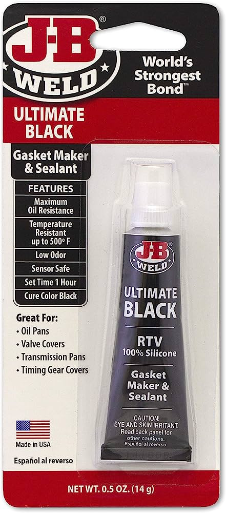J-B Weld Ultimate Black Gasket Maker & Sealant عبارة عن مادة حشية من السيليكون RTV (مبركن بدرجة حرارة الغرفة) مصممة للاستخدام في التجميعات الميكانيكية حيث يتطلب الحد الأقصى لمقاومة البترول والزيت. عند المعالجة ، التي تحدث عندما يتعرض المنتج للرطوبة في الهواء ، يشكل السيليكون مادة صلبة ومقاومة للماء وحشية ومانع تسرب على معظم الأسطح. لن يتقلص أو يتشقق ، يقاوم النفط والمنتجات البترولية ، يقاوم العوامل الجوية ، جهاز استشعار آمن ، لديه مقاومة جيدة لدرجة الحرارة تصل إلى 500 درجة فهرنهايت بشكل متقطع وهو رائع للعديد من تطبيقات السيارات.