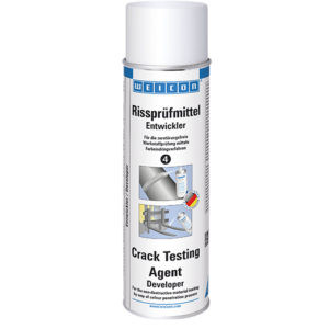 رش على WEICON Crack Testing Agent Developer من حوالي. مسافة 20 سم. قم بالرش فقط على ما يكفي من مظهر المظهر للحصول على خلفية بيضاء على السطح. الكثير من العوامل النامية يمكن أن تغطي الشقوق الدقيقة! تصبح الشقوق والعيوب مرئية كخطوط ونقاط حمراء بعد وقت قصير. قم بإجراء التقييم البصري النهائي بعد 5-10 دقائق.