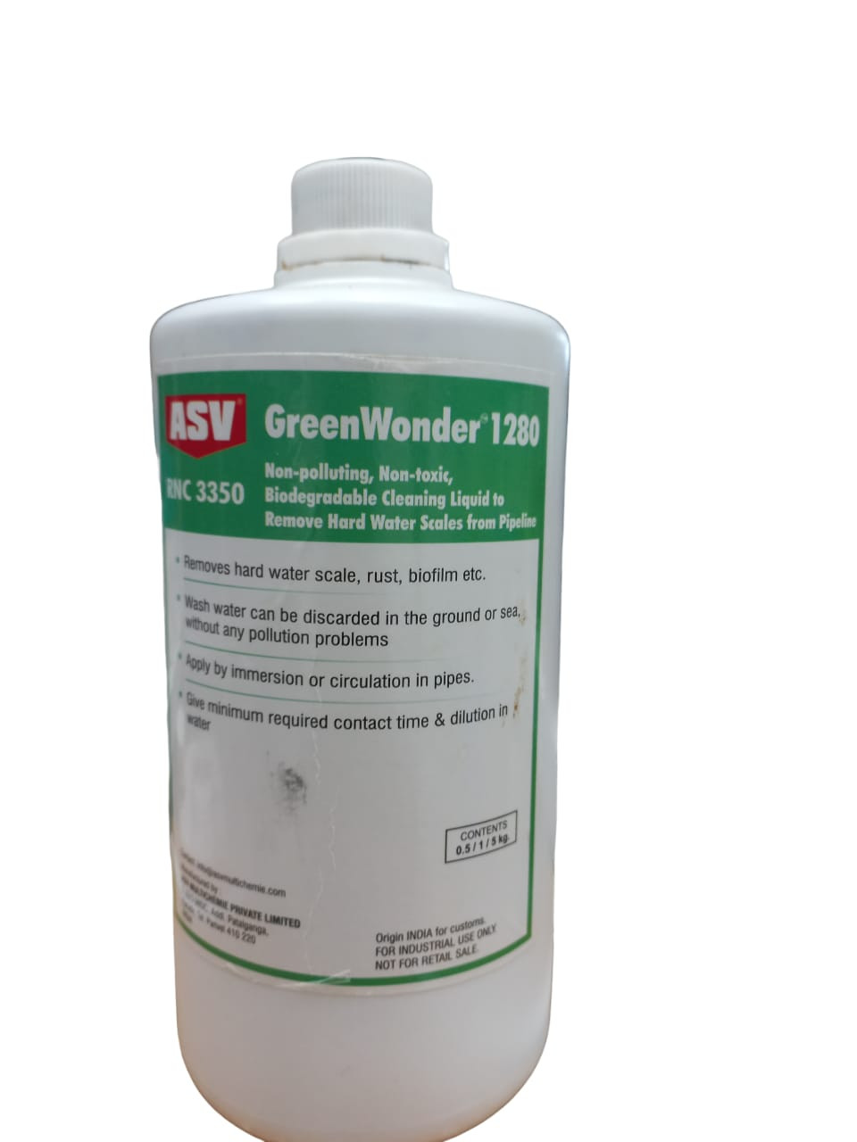 RNC 3350 GREENWONDER 1280 has a pleasant odor and does not exude any obnoxious or toxic vapors when dissolving water scale, lime, or rust deposits.